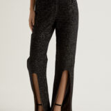 Zona Colonial Noir trousers is a high-rise straight-leg tweed pant with frontal openings adding a modern structural element with a pop of color “Who says tweed has to be boring and dated feel powerful and unique with a timeless sophistication”. Are made with high quality worsted fine wool blended tweed in black-gold color with a unique woven texture and brilliant shimmer. A pop of color was added with a luxurious fine PU leather lining , extremely soft to the touch, durable, and long-lasting color brilliance. This style was crafted with the human in mind sophisticated design that can be dressed up or down and versatile for any occasion. Designed with you in mind giving a confident fit .