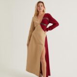 Julia Anita dress is a dynamic, Unique well-tailored tweed-cotton dress with vegan leather details and high side slit. This design incorporates the use of a variety of fabrics that blend in perfect harmony. High-quality worsted fine wool blended tweed in a dessert tan and gold color with unique texture and shimmer. Naturally cultivated Cotton adds comfort with great breathable and durable qualities Effortless drape and flow with undeniable color brilliance that suits an array of skin tones vegan leather detailing to add elevated body shaping contrast. Unique and versatile design for any occasion feel powerful and unique with timeless sophistication.